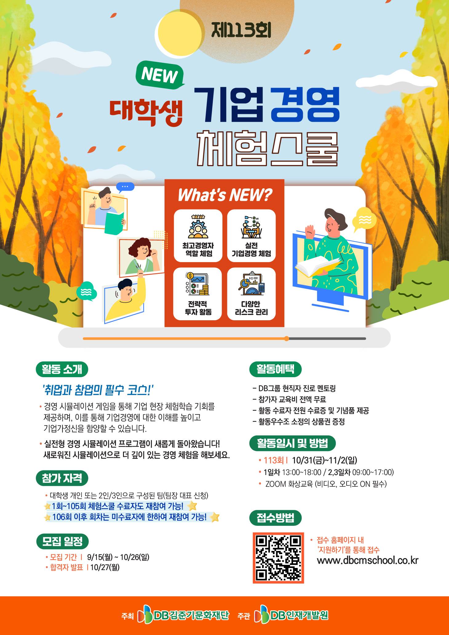 취업게시판 HOME 취업&진로 취업게시판 프린트 취업게시판 상세보기, 제목, 내용, 파일, 작성자등의 정보를 제공합니다. 제목 DB그룹 제113회 NEW 대학생 기업경영 체험스쿨 참여자 모집 (~10/26) 사진 확대보기 png 파일 참조 파일 658484.jpg 작성자 박해원 (영어영문학과) 목록 이전글 [한진] 2026 신입사원 채용 (~10/29) 다음글 [선진] 2025년 대규모 신입/경력 채용 (~10/28)
