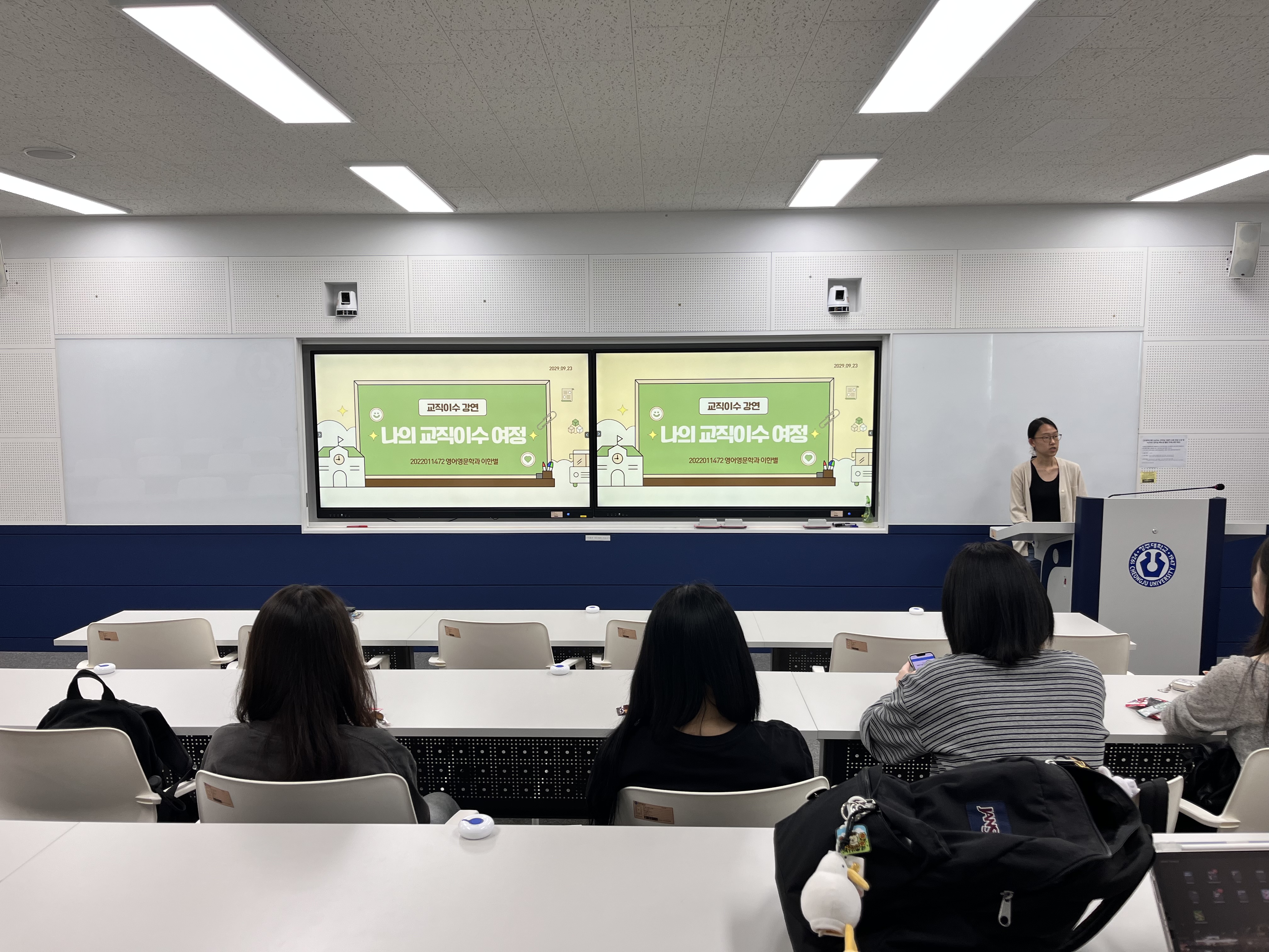 2025년 9월 23일(화) 오후 4시부터 6시까지, 인문사회대학 20-133 강의실에서 교직이수 선후배 만남 프로그램이 열렸습니다. 이번 자리는 교직이수를 준비하거나 관심 있는 학생들을 위해 마련된 뜻깊은 시간으로, 1학년 학생들과 교직이수 중인 4학년 선배들이 함께 모여 의미 있는 교류를 나누었습니다.