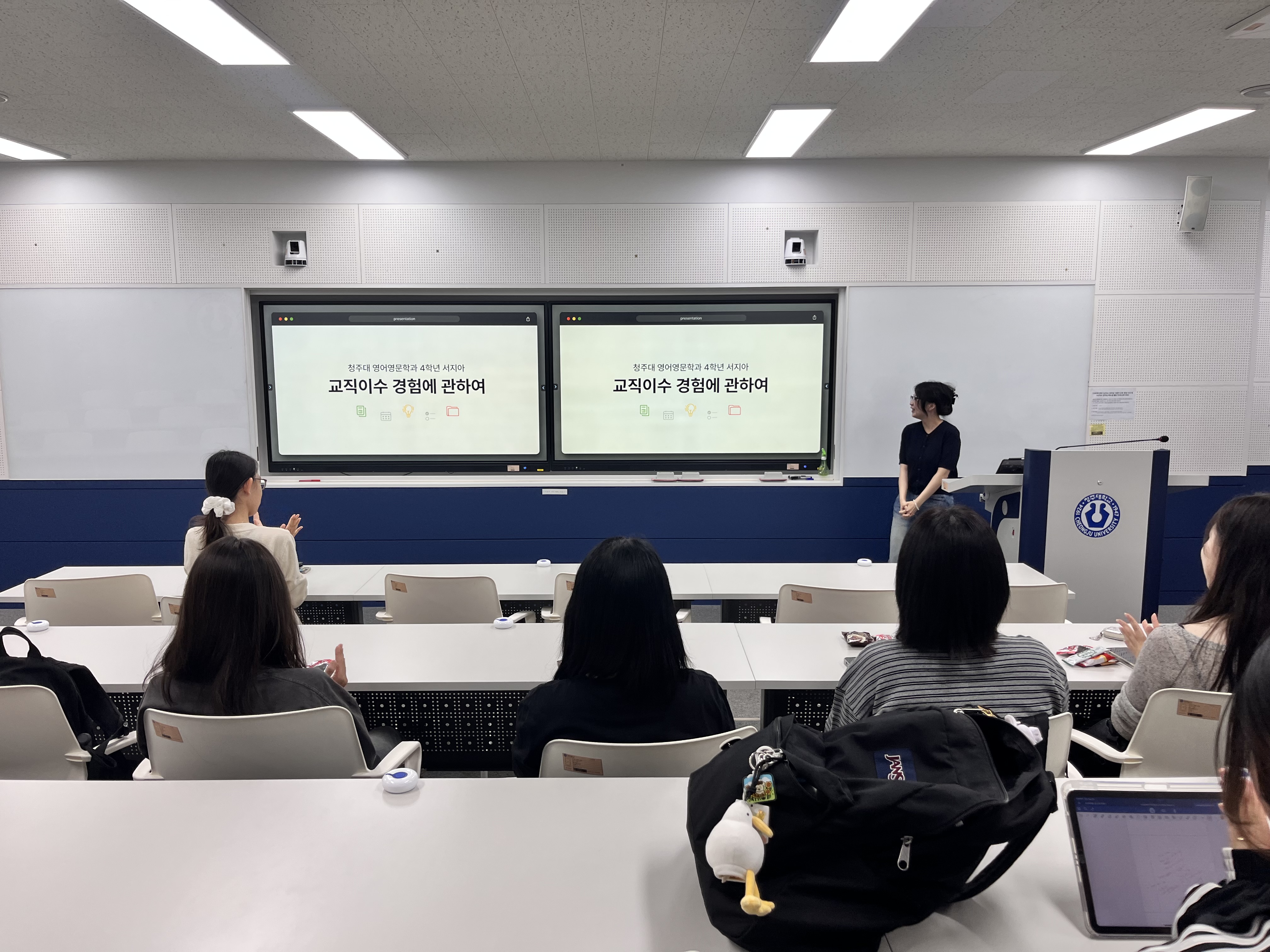 프로그램에서는 4학년 선배들이 직접 경험한 교직이수 제도 이해, 학점 관리 방법, 교육실습 과정 등을 상세히 소개하며 후배들에게 현실적이고 유익한 조언을 전해 주었습니다. 이어진 질의응답과 상담 시간에서는 1학년 학생들이 평소 궁금해하던 점들을 자유롭게 묻고, 선배들의 진솔한 답변을 들으며 구체적인 방향을 잡을 수 있었습니다. 특히 교직에 관심 있는 학생들에게는 교직이수 과정과 앞으로의 진로를 더 깊이 이해하고 준비할 수 있는 소중한 기회가 되었으며, 선배들의 경험담은 후배들에게 큰 힘과 동기부여가 되었습니다. 이번 프로그램을 통해 영어영문학과 학생들은 서로의 경험과 고민을 나누며 학과 안에서의 든든한 유대감을 다질 수 있었고, 앞으로도 선후배가 함께 성장할 수 있는 의미 있는 만남이 계속 이어질 예정입니다. |